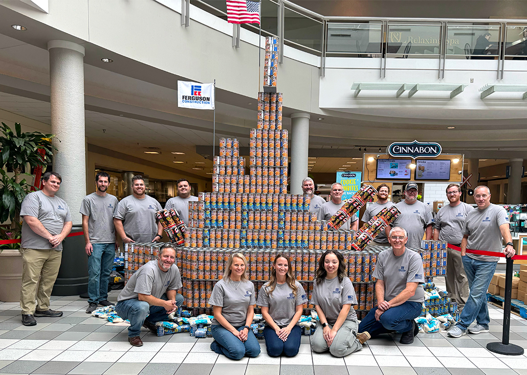 Ferguson employees have enjoyed the opportunity to be a part of helping create, build, and vote for the company’s can structure each year. In past years, Ferguson has built a giant hard hat, large boot, a bulldozer, lego construction people, and a battleship.